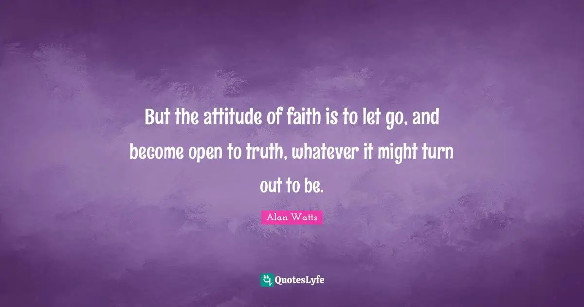 3 But the attitude of faith is to let go and become open to truth whatever it might turn out to be Alan Watts. We cannot be more sensitive to pleasure without being more sensitive to pain. Alan Watts - But the attitude of faith is to let go and.