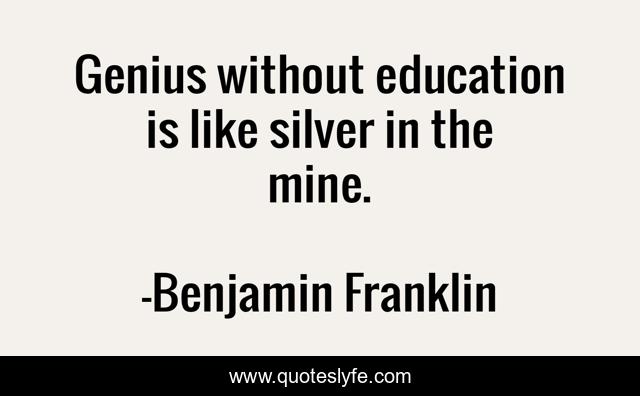Genius without education is like silver in the mine. Get find and learn more Benjamin Franklin Quotes. Genius without education is like silver in the mine 是谁说的. According to this statement from Benjamin Franklins Poor Richards Almanack what is the result of a lack of education.