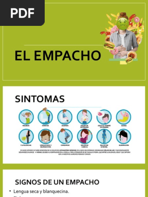 Sintomas de un empacho en adultos. El empacho es un malestar que ocurre luego de la ingesta de alimentos de una forma desmesurada excesiva y sobre todo cuando dichos alimentos tienen algo contenido de grasas como pueden ser patatas fritas pollo chancho también puede ocurrir cuando se consume demasiados postres o golosinas lo que produce una digestión lenta pesada y que hace que el. En estos casos se hace necesario acudir al médico porque el empacho puede ser reflejo de una enfermedad del estómago como gastritis úlceras gástricas presencia de la bacteria Helicobacter pylori y reflujo gastroesofágico cálculos en la vesícula o inflamación del intestino delgado duodenitis. No comer nada en varias horas hasta que notes el estómago bien.